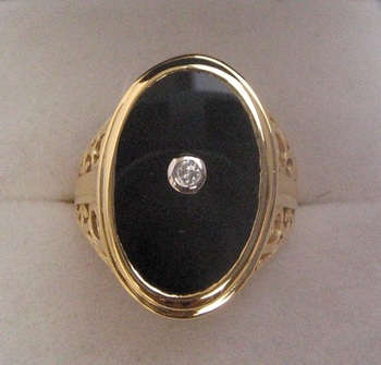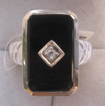 แหวนฮิปฮอปสีทองสีขาวพร้อมพลอยสีดำโอนิกซ์และเจียระไนเพชรอัญมณีรูปทรงเรขาคณิตฝังเครื่องประดับทองสีเหลืองที่มีใบรับรอง IGI